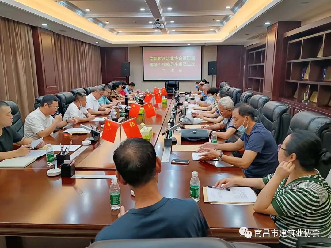8月25日,南昌市建筑业协会第四届筹备工作领导小组第二次工作会议,在洪宇建设集团公司大会议室召开,领导小组成员、协会领导和秘书处有关人员出席会议。