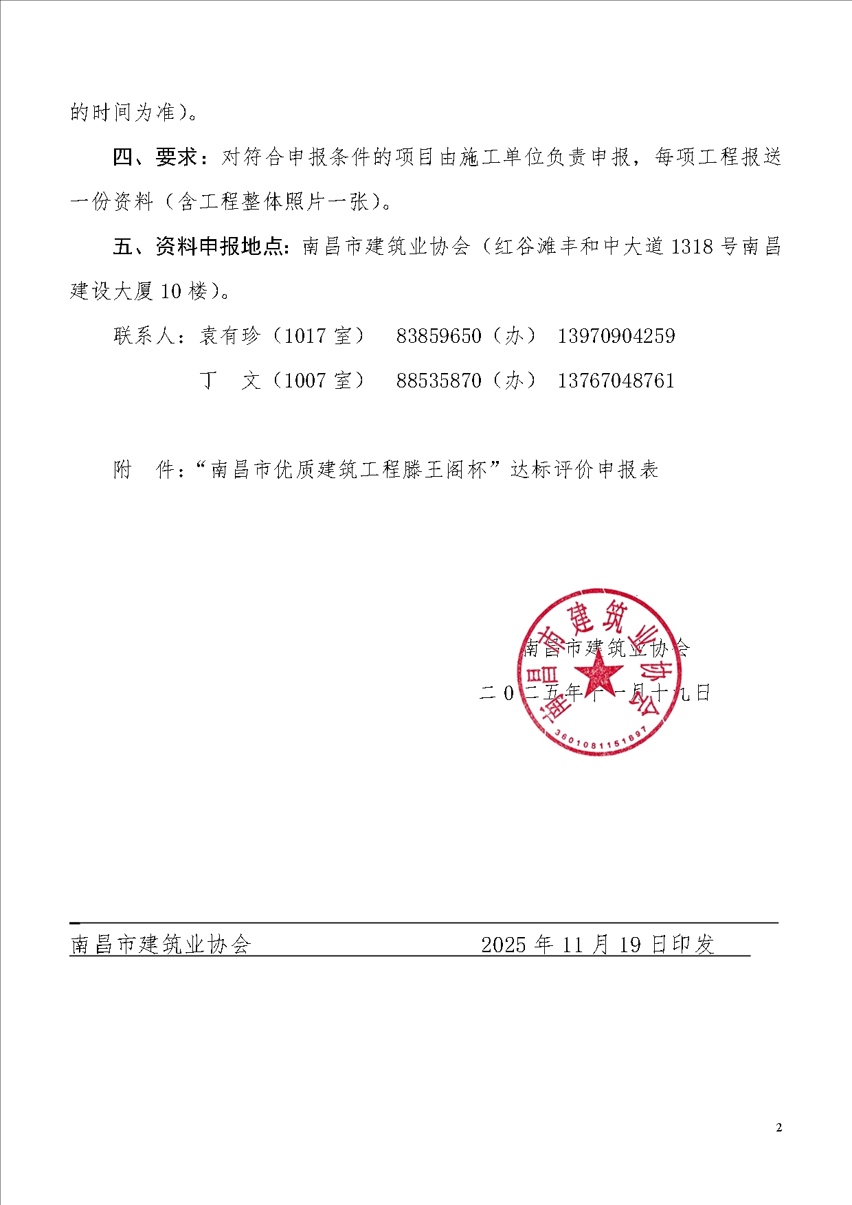 关于开展2025年度“南昌市优质建筑工程 滕王阁杯”达标评价活动的通知